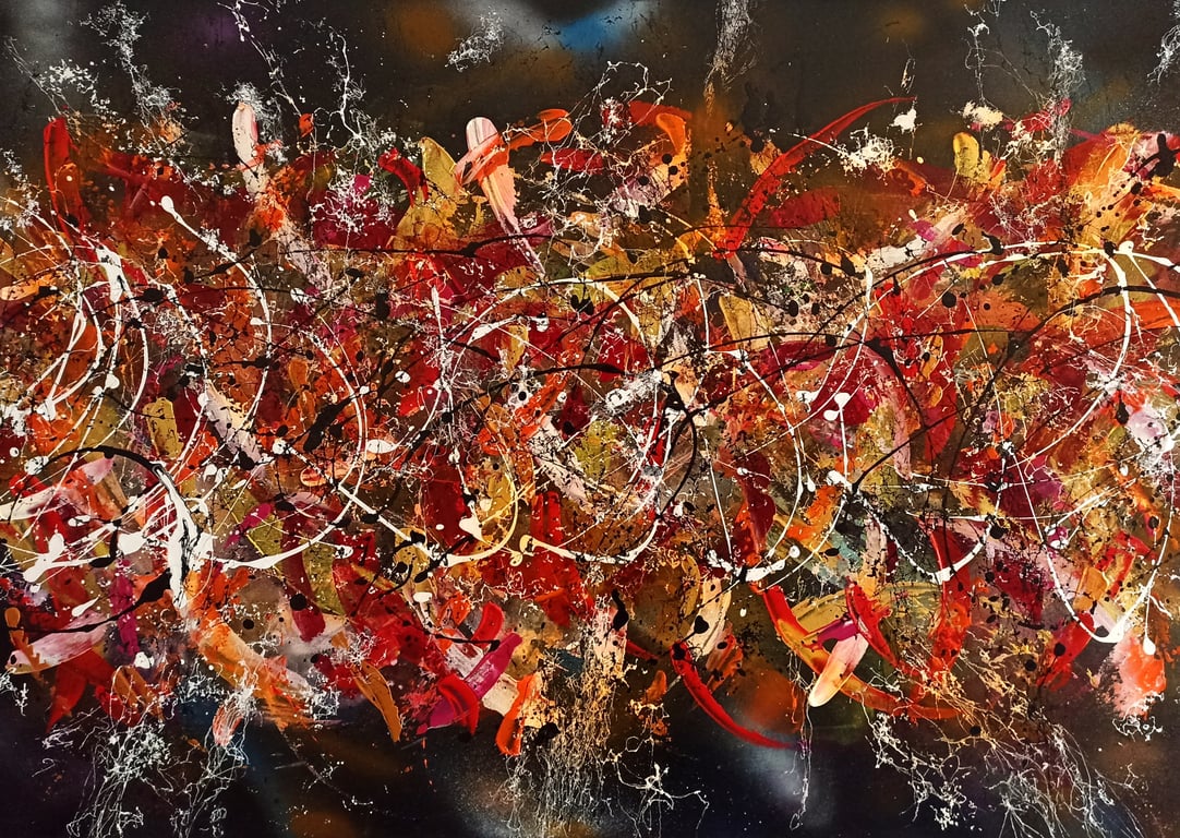 - Tuval üzerine akrilik ve sprey boya ile çalışılmıştır.