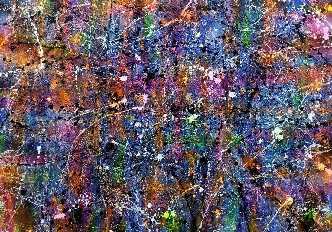 - Tuval üzeri akrilik, sprey boya ve tekstür pasta ile çalışılmıştır.