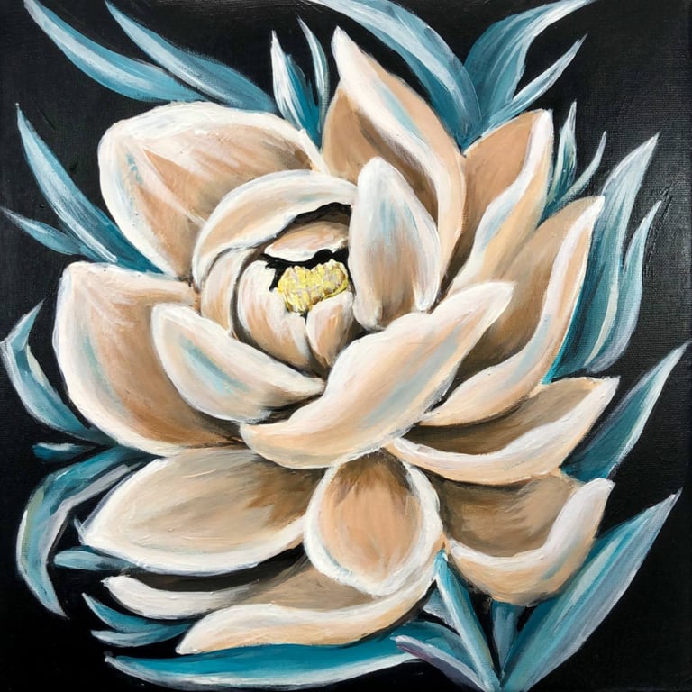 Krem Renginde Şakayık çiçeği Orijinal Küçük Akrilik Tablo