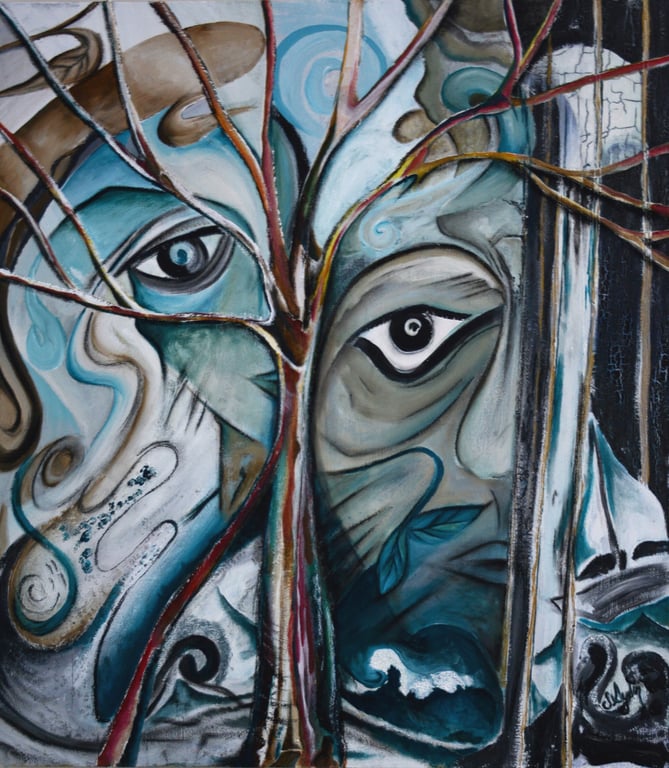 Yarım anlamına gelen Latince "Dimidium" adlı tabloda iki ayrı insanın yarım kalmışlıkları, ardında bıraktıkları, sanatsal bir ifadeyle yorumlanmıştır. eser, sanatçının "Arkhe" serisine aittir. Tuval üzerine akrilikle çalışılmış, bazı kısımları pastel boya ile vurgulanmıştır. Üzerine koruyucu amaçlı fiksatif (sprey mat vernik) uygulanmıştır. Özgünlük sertifikası vardır. Çalışma, özenle paketlenerek sanatçı tarafından kargolanacaktır.